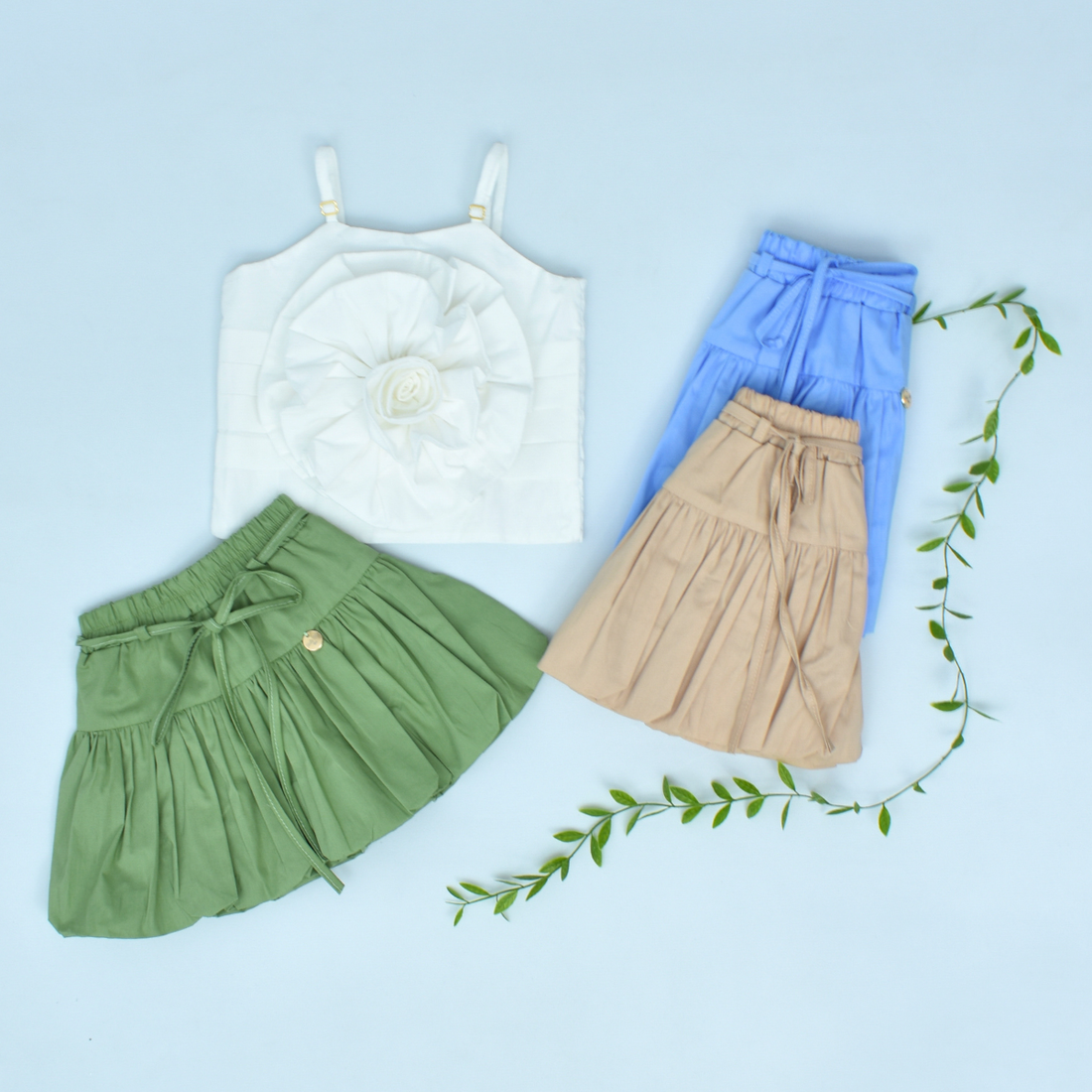 Conjunto de Falda Globo y Blusa Flor Niña Bebé