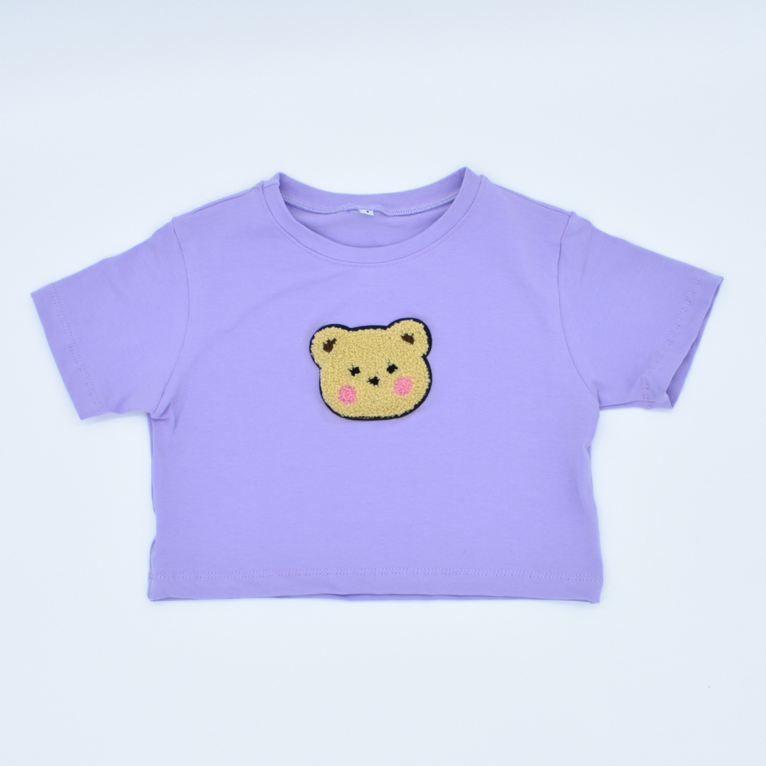 Blusa corta. Su diseño destaca por el encantador parche de un oso con textura de...