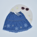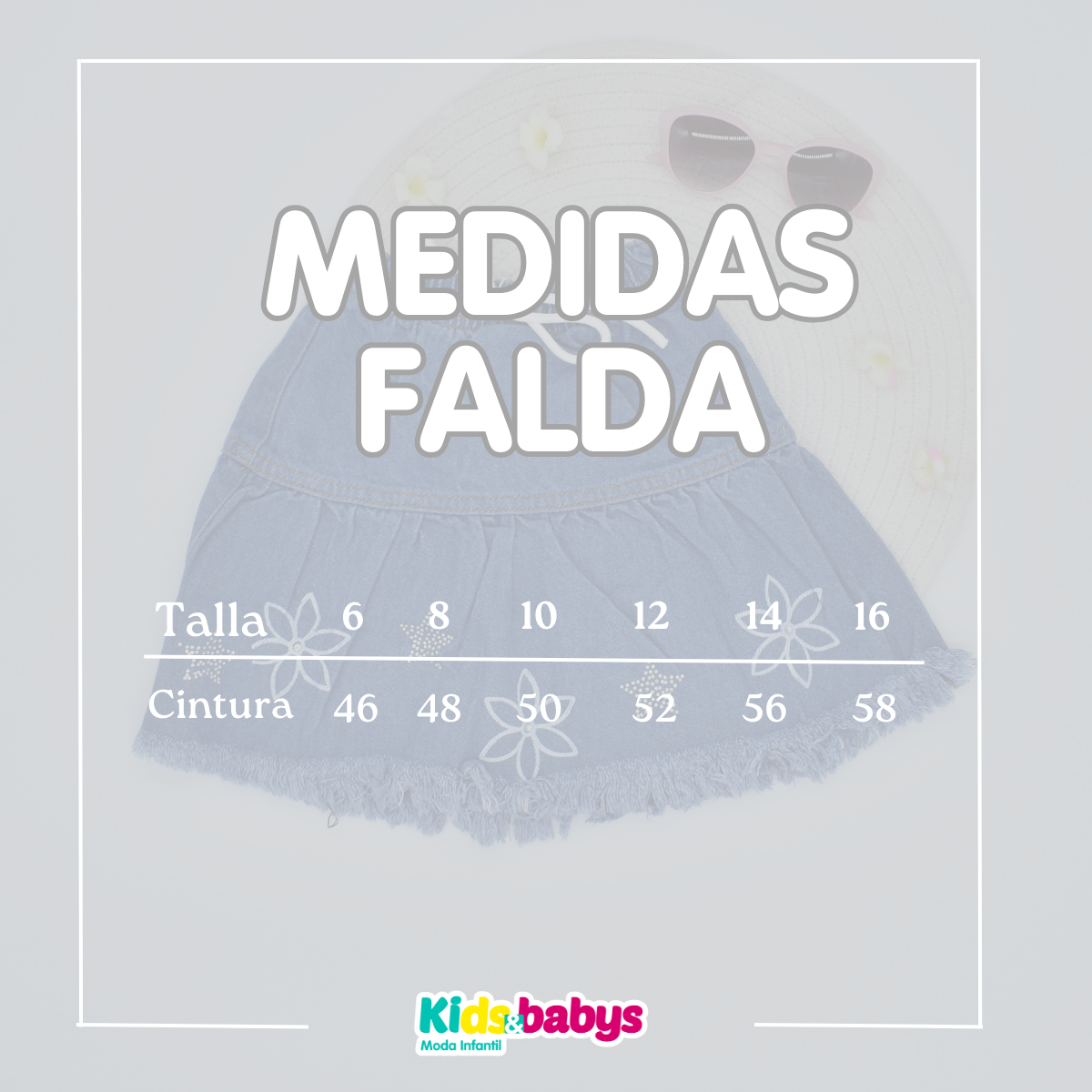 ¡La prenda perfecta para los días soleados! Esta encantadora falda tipo denim combina estilo y comodidad con un diseño moderno y divertido. Su borde tipo desgastado le da un toque fresco y casual, mientras que el estampado de flores y estrellas con apliques brillantes la convierten en una prenda única que tu pequeña amará.