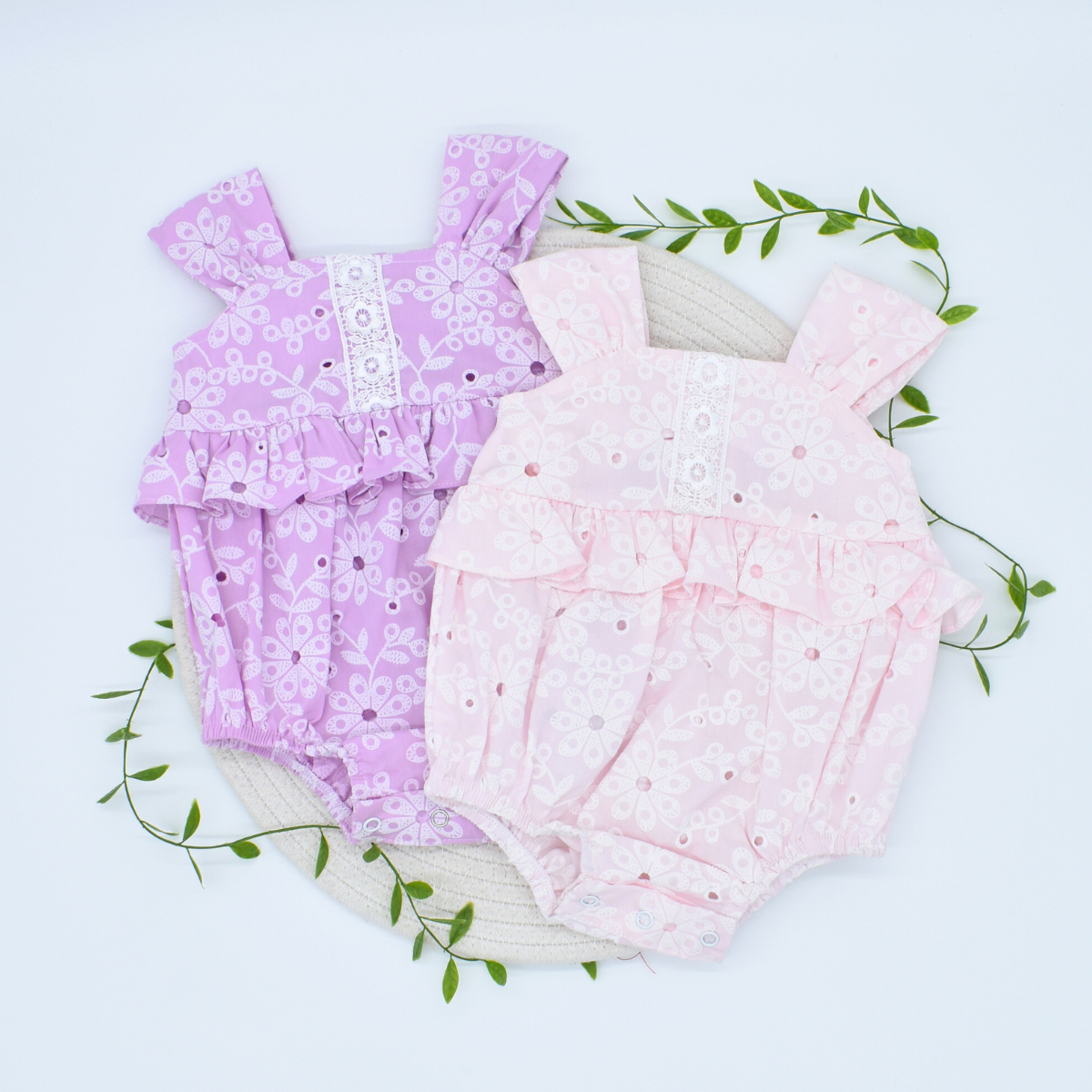 Viste a tu pequeña con la frescura de nuestro asoleador, confeccionado en delicado tejido, ideal para mantener fresco y cómoda durante los días soleados. Este diseño destaca por su pechera de encaje, un estilo clásico con la practicidad de sus broches inferiores para un cambio de pañal rápido y sencillo, su suave elástico en las piernas asegura un ajuste perfecto, convirtiéndolo en la prenda ideal.