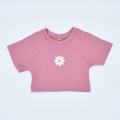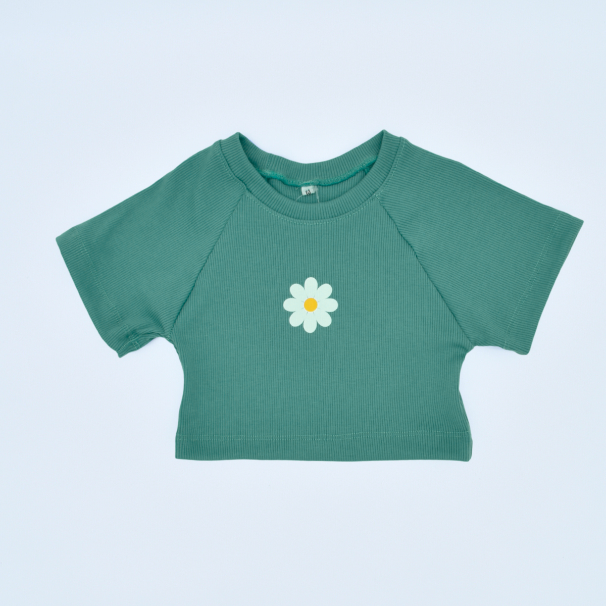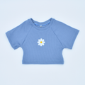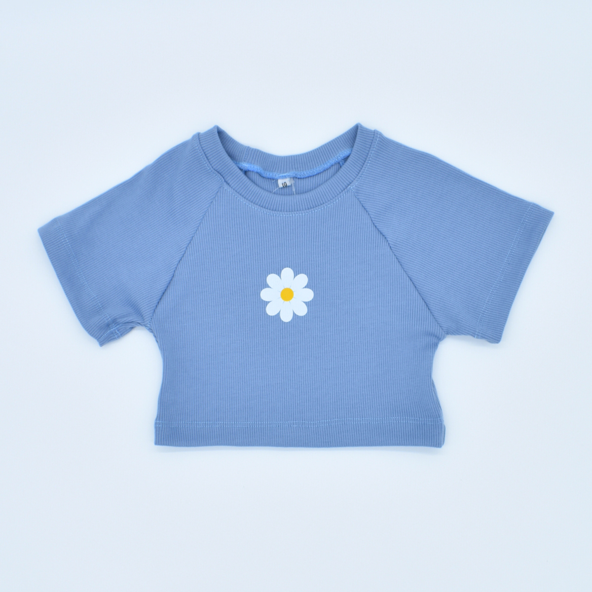 Blusa básica. Confeccionada en tela Rib 100% algodón, su diseño es simple y fresco. con estampado de una margarita en el centro. Es ligera, cómoda y fácil de combina.