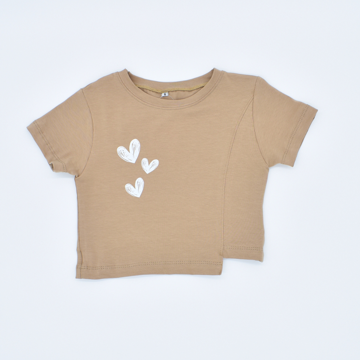 Esta blusa viene en tres colores muy llamativos como lo son el amarillo, el rojo y el beige. Tiene tiene un corte asimétrico y un estampado de unos 3 corazones. Una blusa muy a la moda.