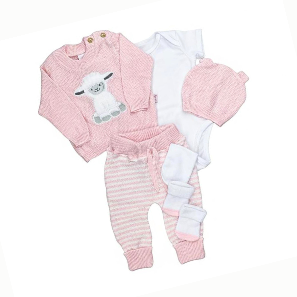 Set de primer día tejido con un diseño adorable. Es ideal para la comodidad y la delicadeza de nuestro recién nacido.
