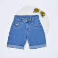 Este short en denim clásico es la prenda perfecta y el sutil detalle de una corona dorada le dan un toque moderno. El dobladillo con vuelta, stretch y su tiro alto le añade un estilo casual y versátil.