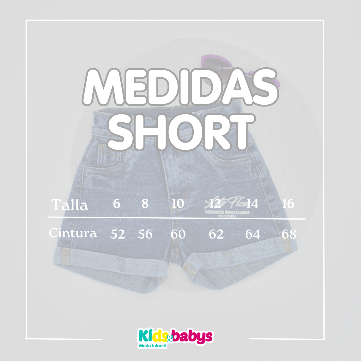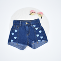 Short niña en denim con corazones estampados en la parte frontal, tela rígida, suave y cómodo.