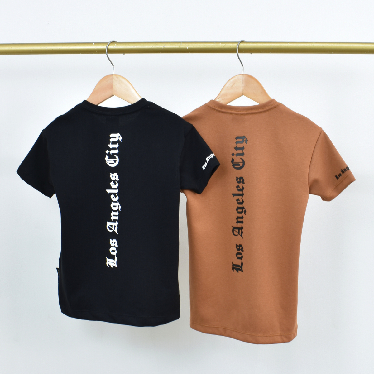 Conjunto deportivo y moderno con camiseta de corte oversize y cuello redondo, destacando por un estampado minimalista con la frase "LA City". Esta se combina a la perfección con un pantalón jogger, que fusiona la comodidad de un pantalón deportivo con detalles cargo gracias al bolsillo de parche con solapa.