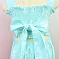Este vestido largo está confeccionado en tela hoja rota en una composición de 100% algodón, con forro en dacrón para evitar trasparencias, detalles florales, tirantes anchos, en su espalada resorte y ajustable con lazo para formar un moño y darle un toque de elegancia.