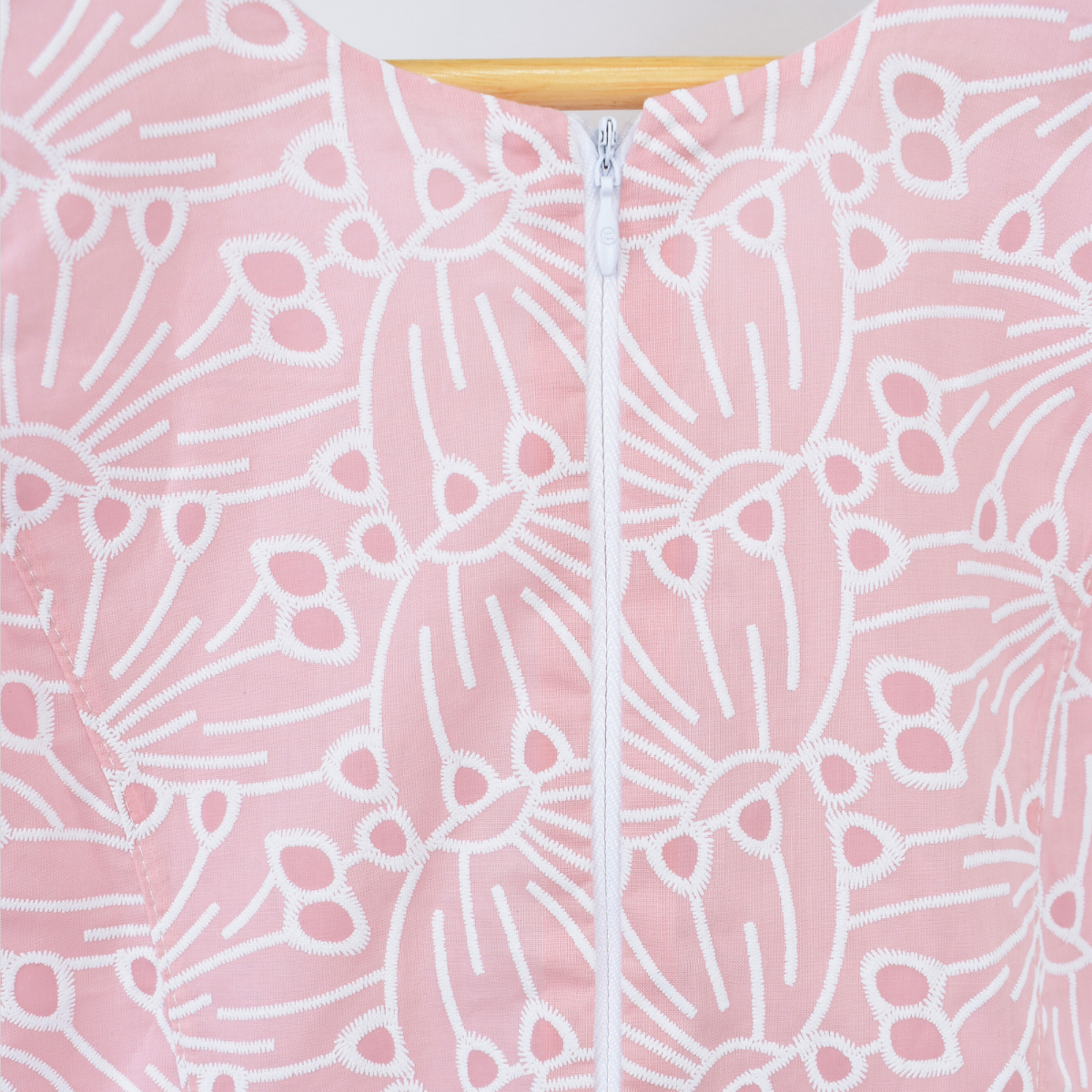 Vestidos de niña con un estampado delicado de mariposas en contraste con colores suaves, tienen un corte de princesa con tirantes y una falda fruncida con vuelo. En su espalda se ajusta con un cierre discreto.